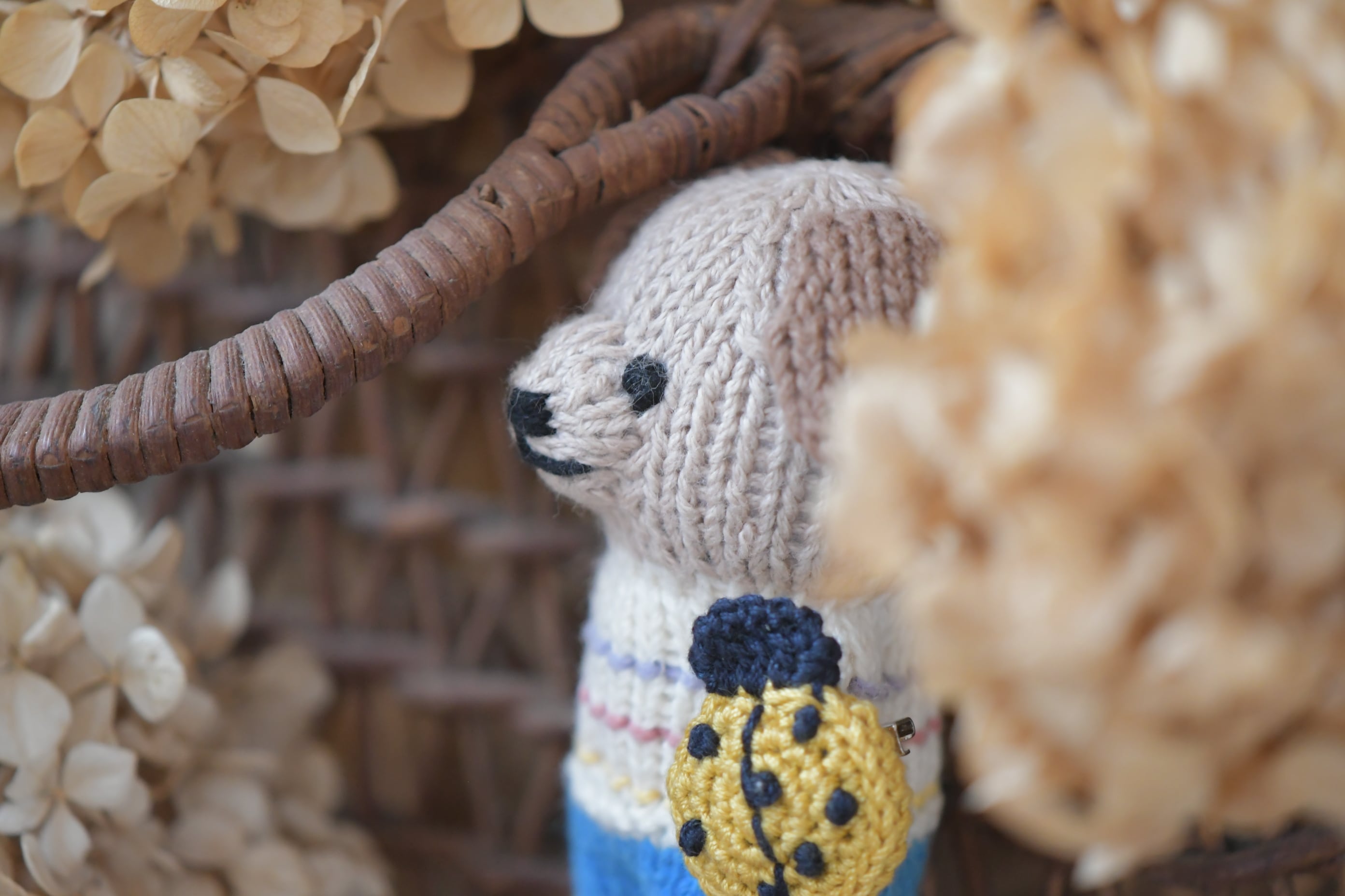 スウェーデン編み人形 犬×てんとう虫 (黄)